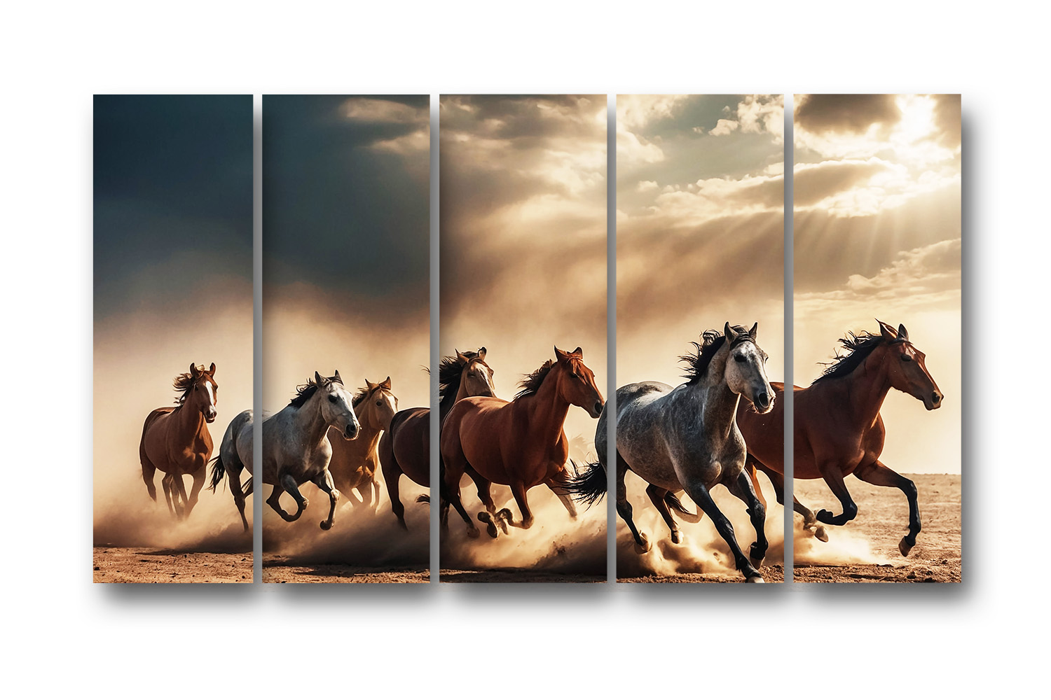 Casperme 7 Horses Wall Painting Framed Big Size For Living Room, Home, office & Wall Decor, 48 x 30 inches set of 5