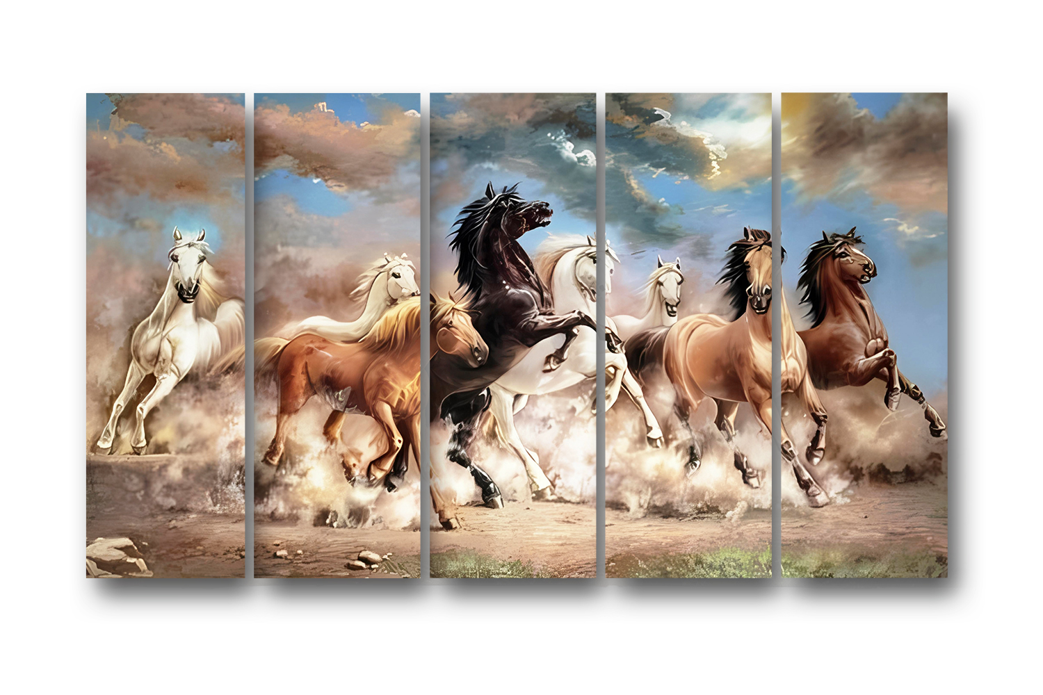Casperme 7 Horses Wall Painting Framed Big Size For Living Room, Home, office & Wall Decor, 48 x 30 inches set of 5
