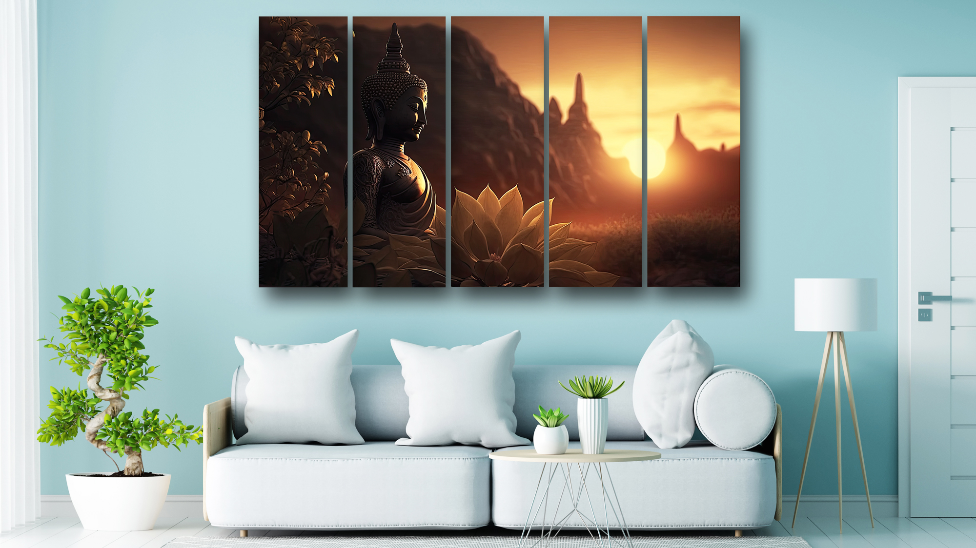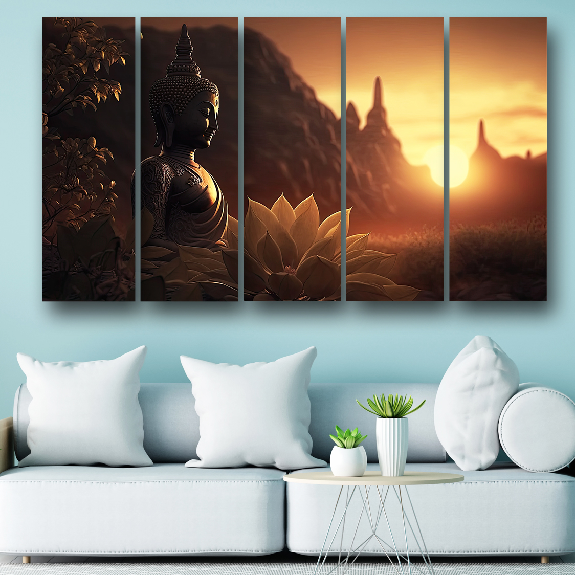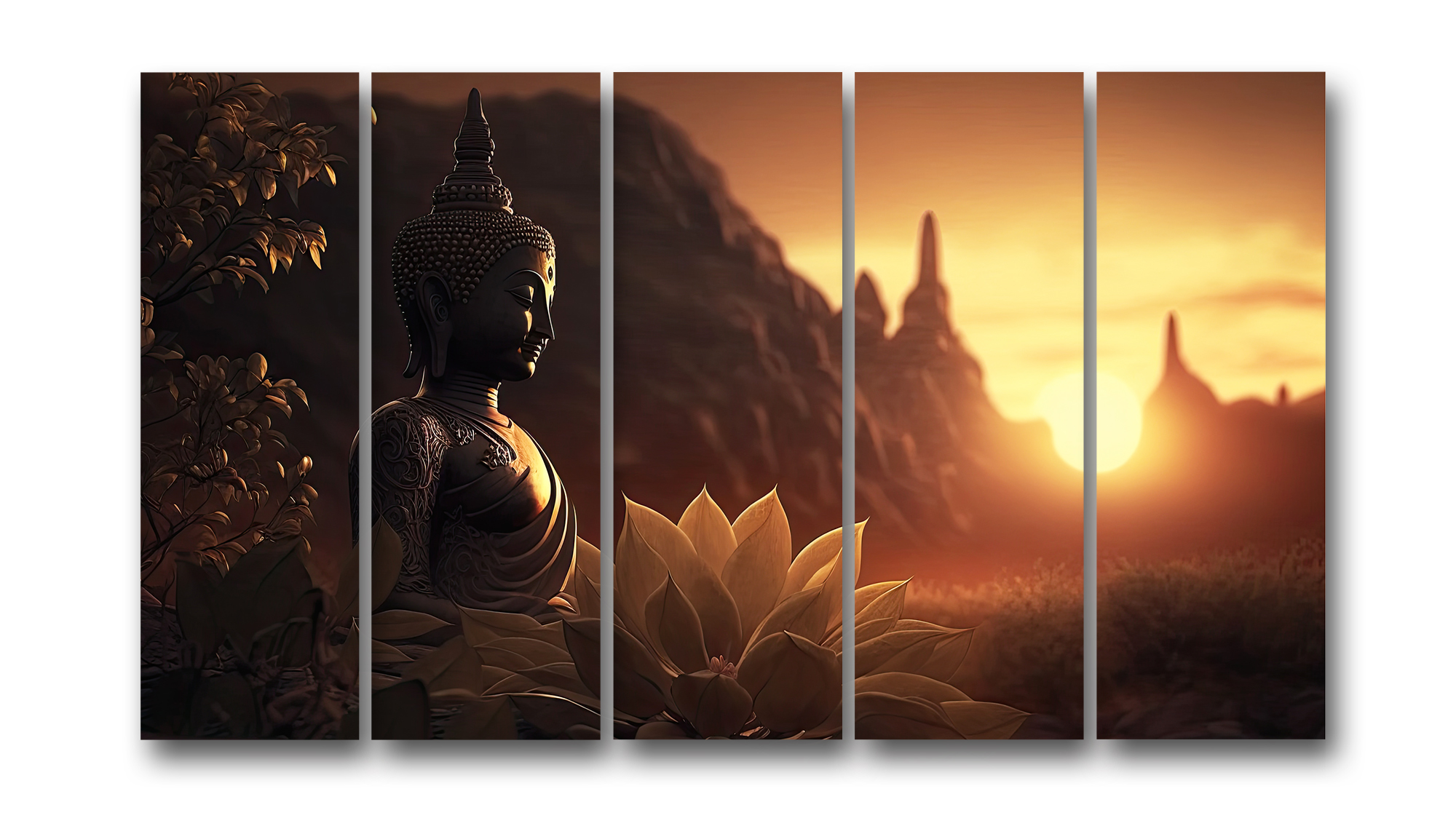 Casperme Buddha ji Wall Painting Framed Big Size For Living Room, Home, office & Wall Decor, 48 x 30 inches set of 5
