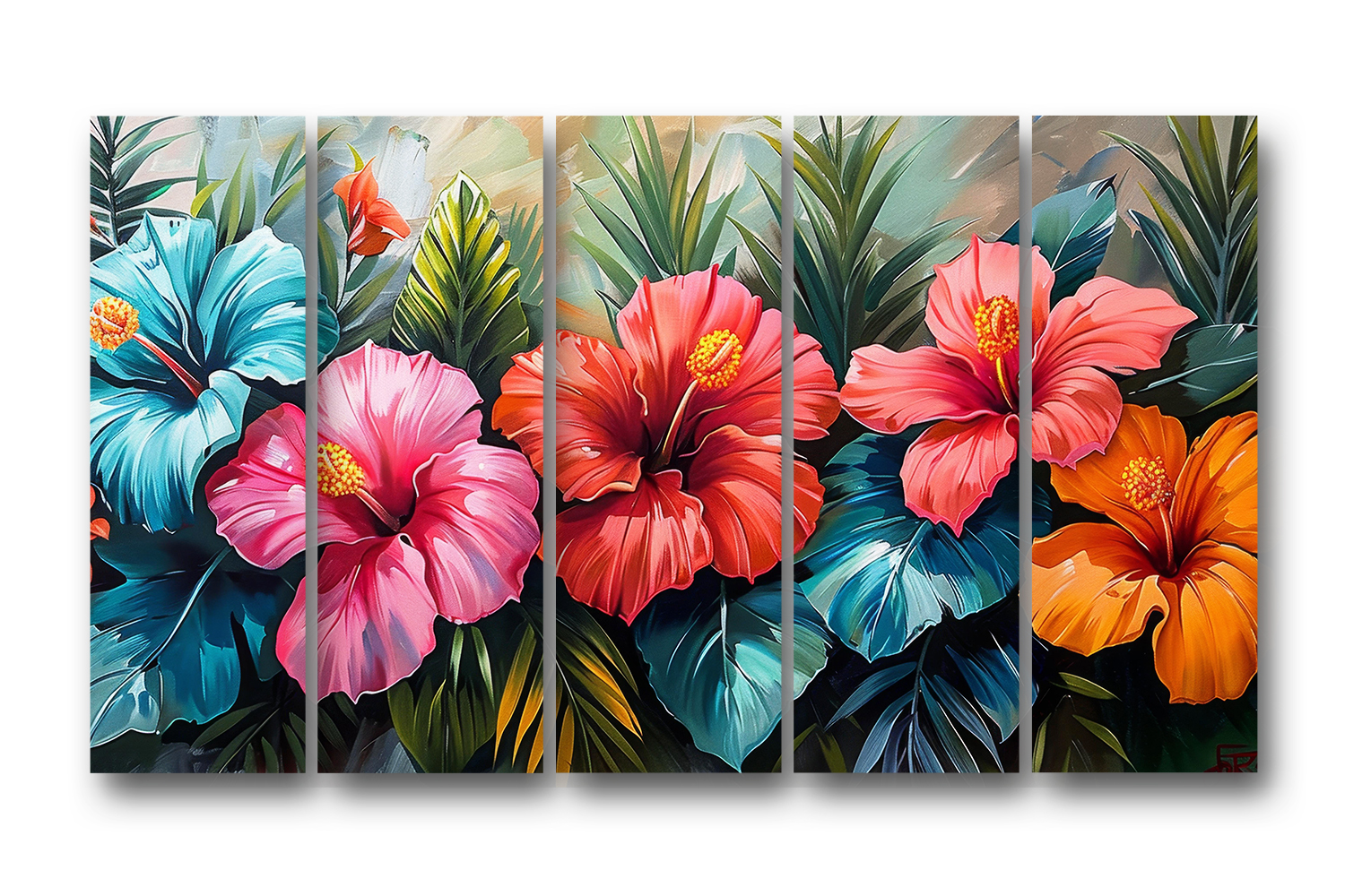 Casperme Floral Wall Painting Framed Big Size For Living Room, Home, office & Wall Decor, 48 x 30 inches set of 5
