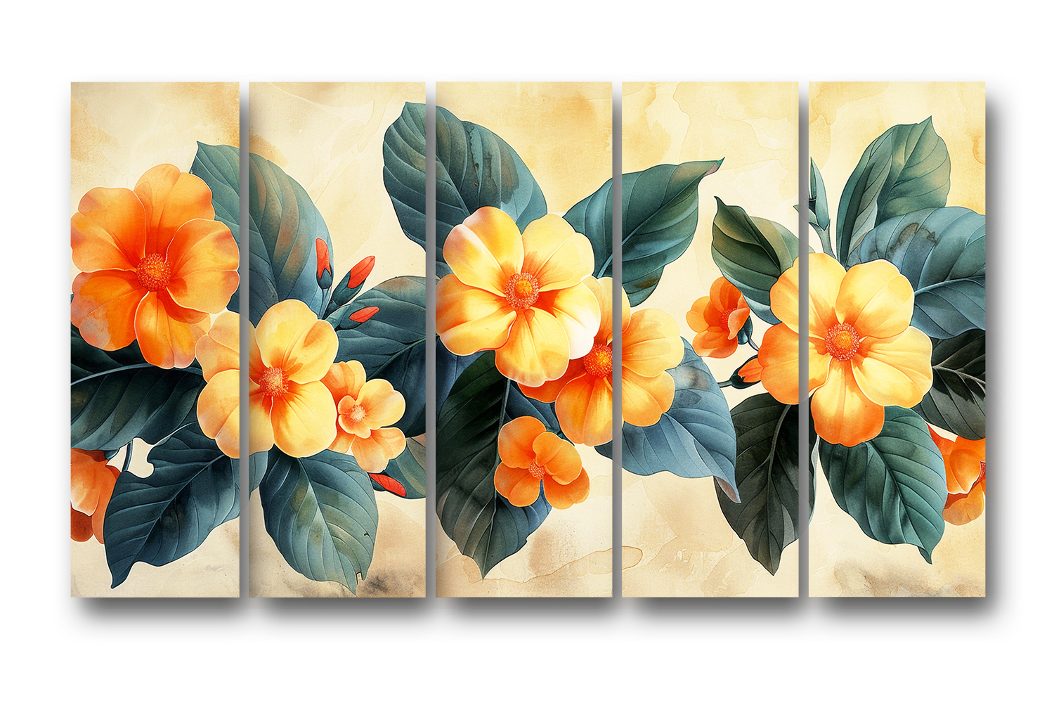 Casperme Floral Wall Painting Framed Big Size For Living Room, Home, office & Wall Decor, 48 x 30 inches set of 5