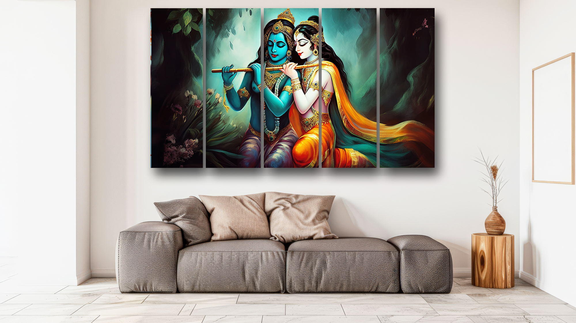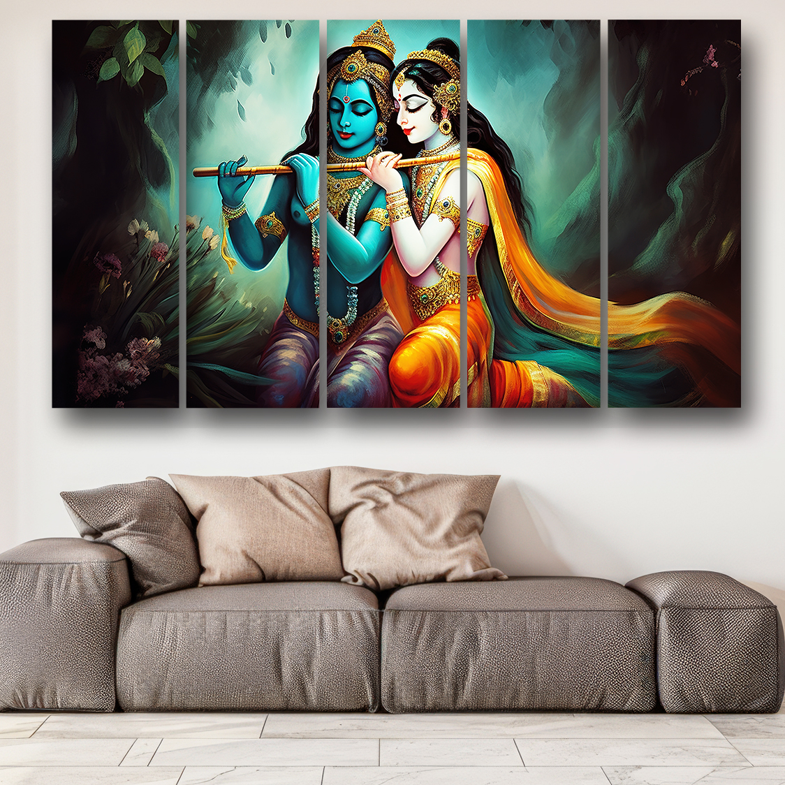 Casperme Radha krishan Wall Painting Framed Big Size For Living Room, Home, office & Wall Decor, 48 x 30 inches set of 5