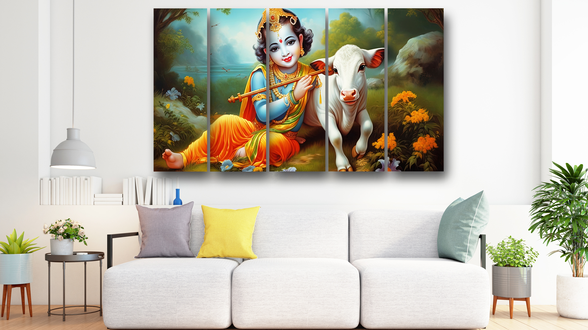 Casperme krishan ji Wall Painting Framed Big Size For Living Room, Home, office & Wall Decor, 48 x 30 inches set of 5