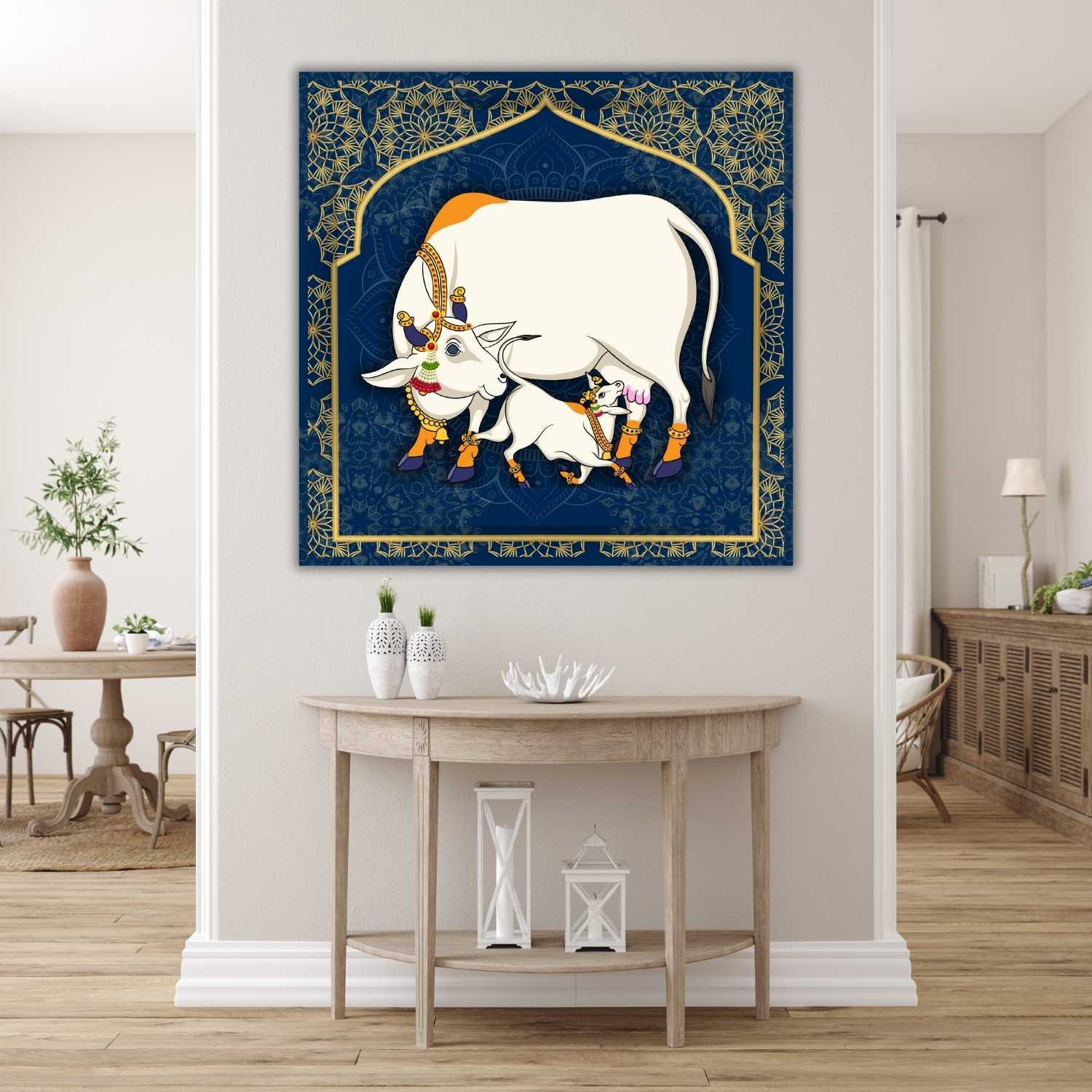 Transform your walls with CasperMe’s exquisite collection of Kamdhenu Cow Vastu Wall Paintings for living room.