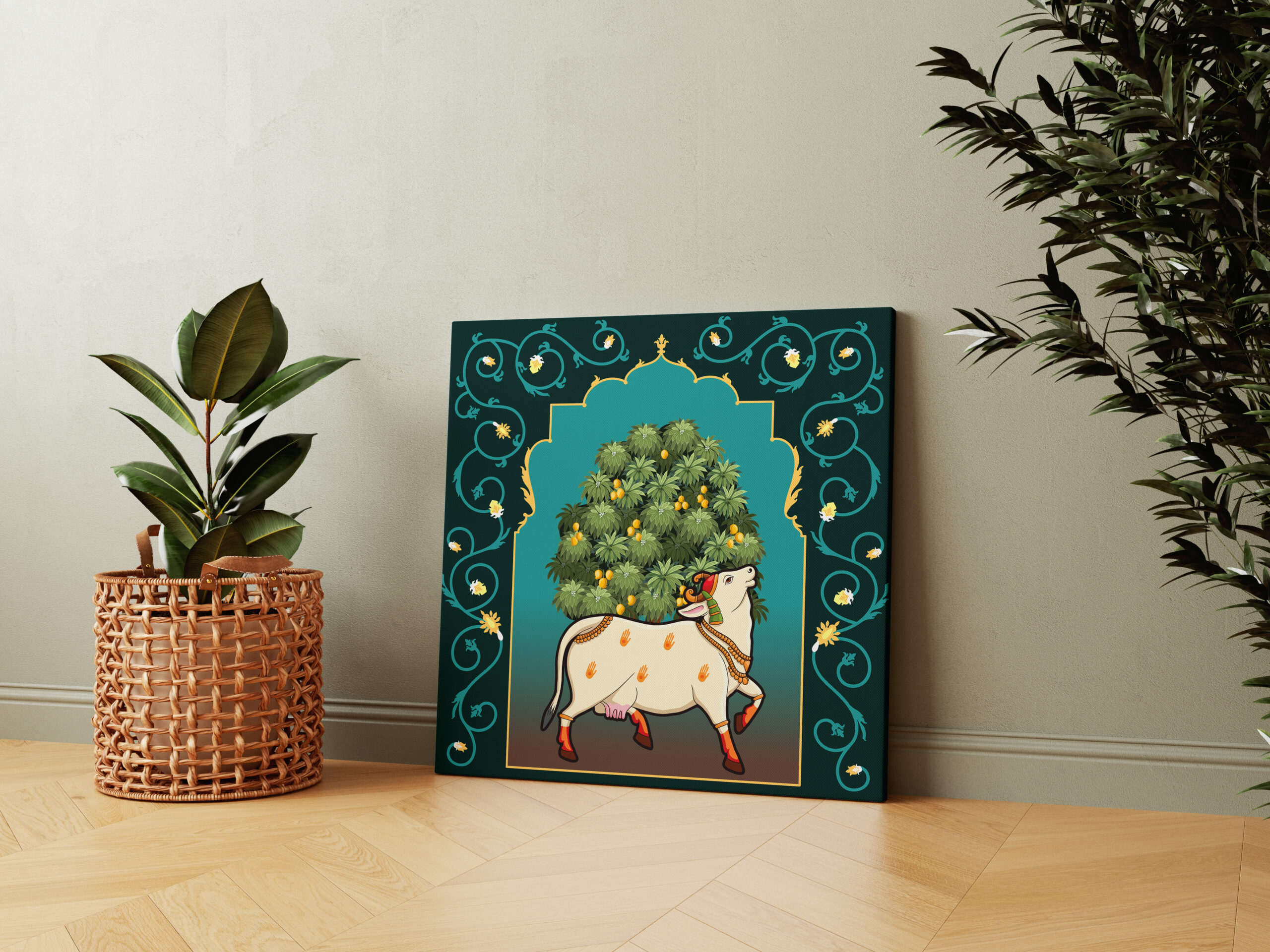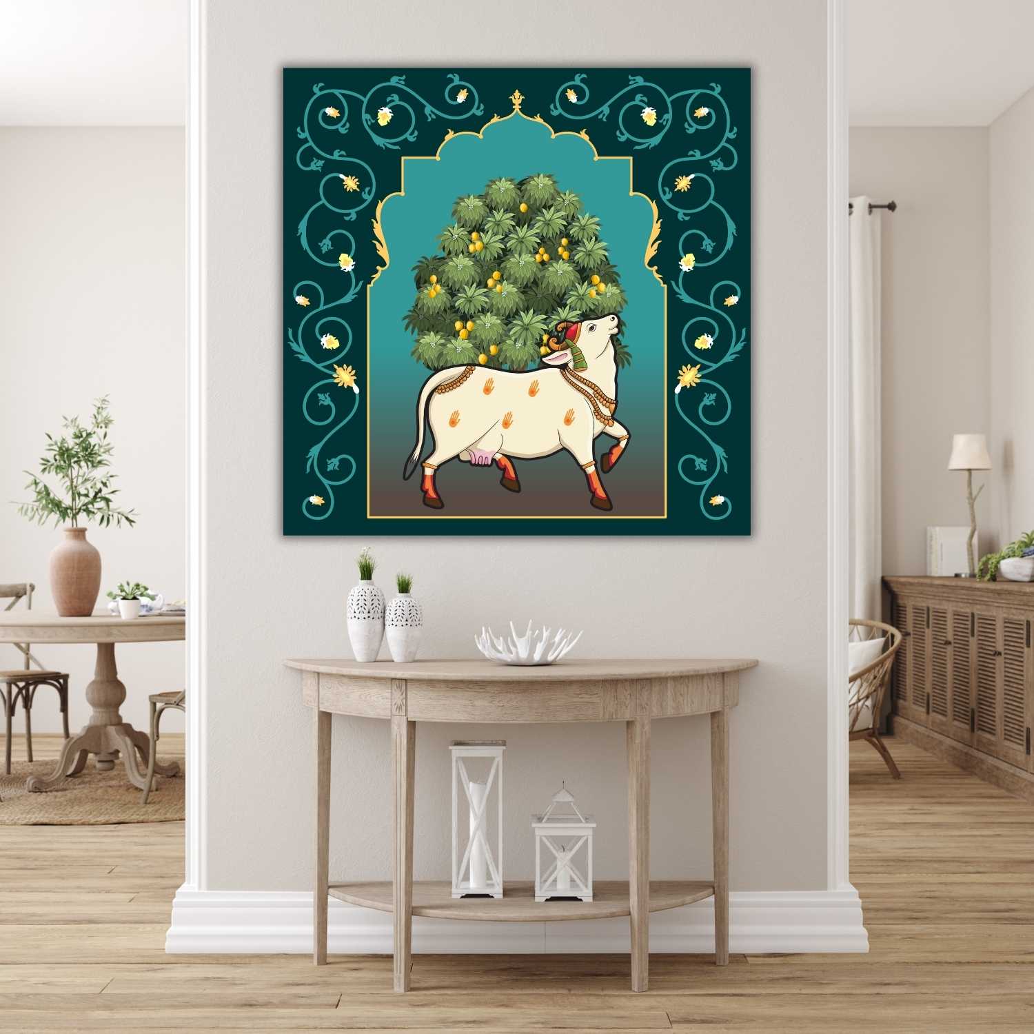 Transform your walls with CasperMe’s exquisite collection of Kamdhenu Cow Vastu Wall Paintings for living room.