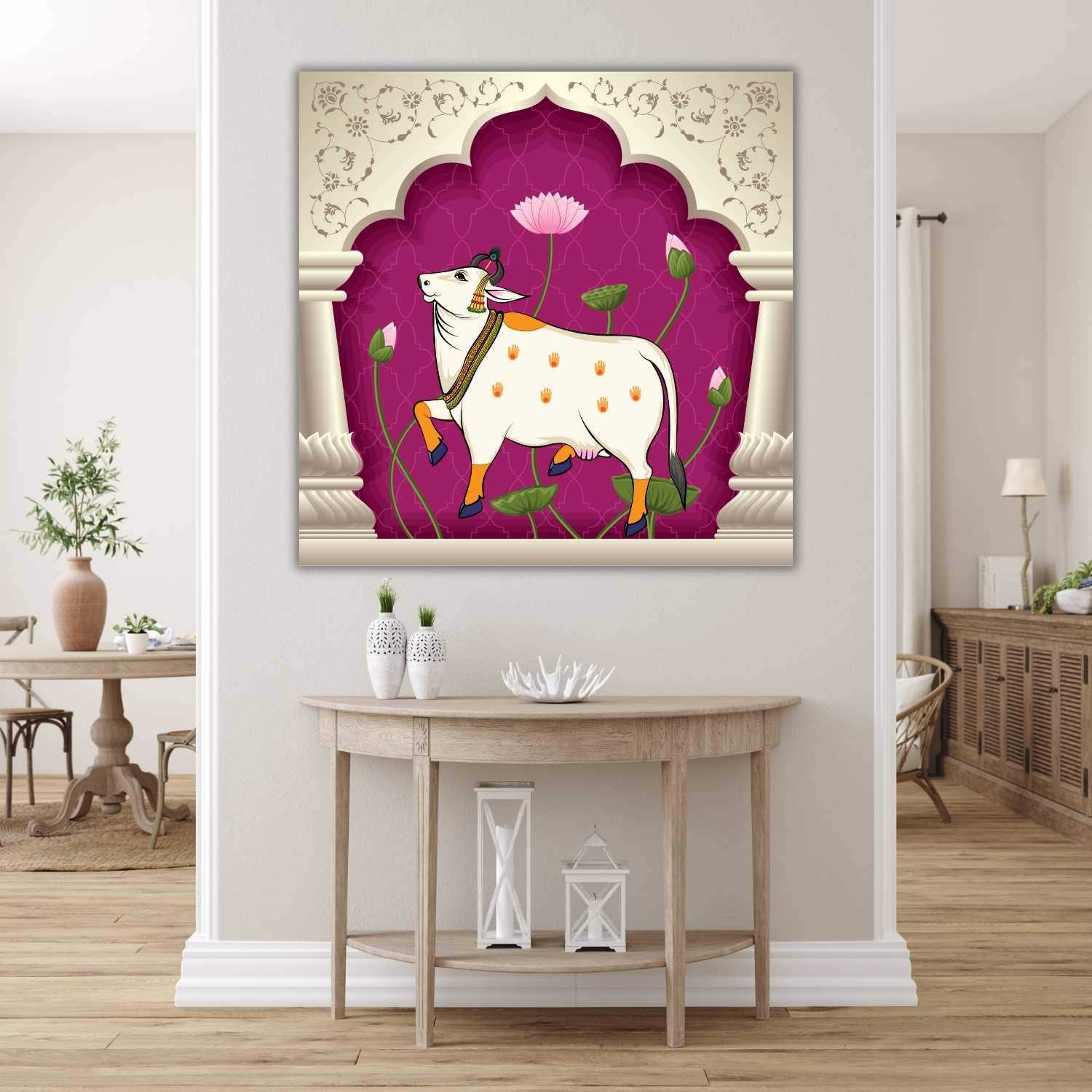 Transform your walls with CasperMe’s exquisite collection of Kamdhenu Cow Vastu Wall Paintings for living room.